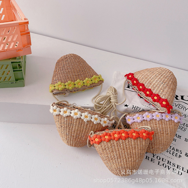 نمط جديد شخصية المنسوجة زهرة طازجة للأطفال Crossbody حقيبة صغيرة الصيف السفر حقيبة القش حقيبة كتف الملحقات