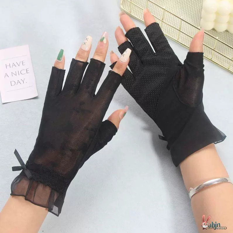 قفازات صيفية للنساء من الحرير الجليدي قصيرة نصف إصبع واقية من الشمس