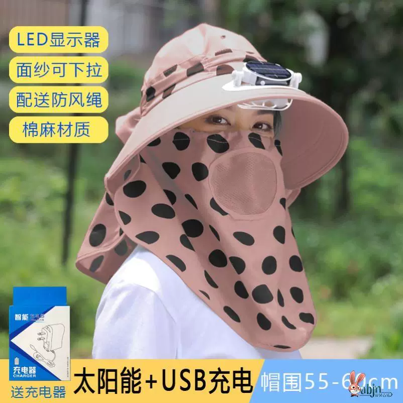 قبعة تعمل بالطاقة الشمسية للرجال والنساء في الصيف للحماية من أشعة الشمس الخارجية للآباء في الدفيئة مع مروحة كهربائية لقبعة شحن الشاي