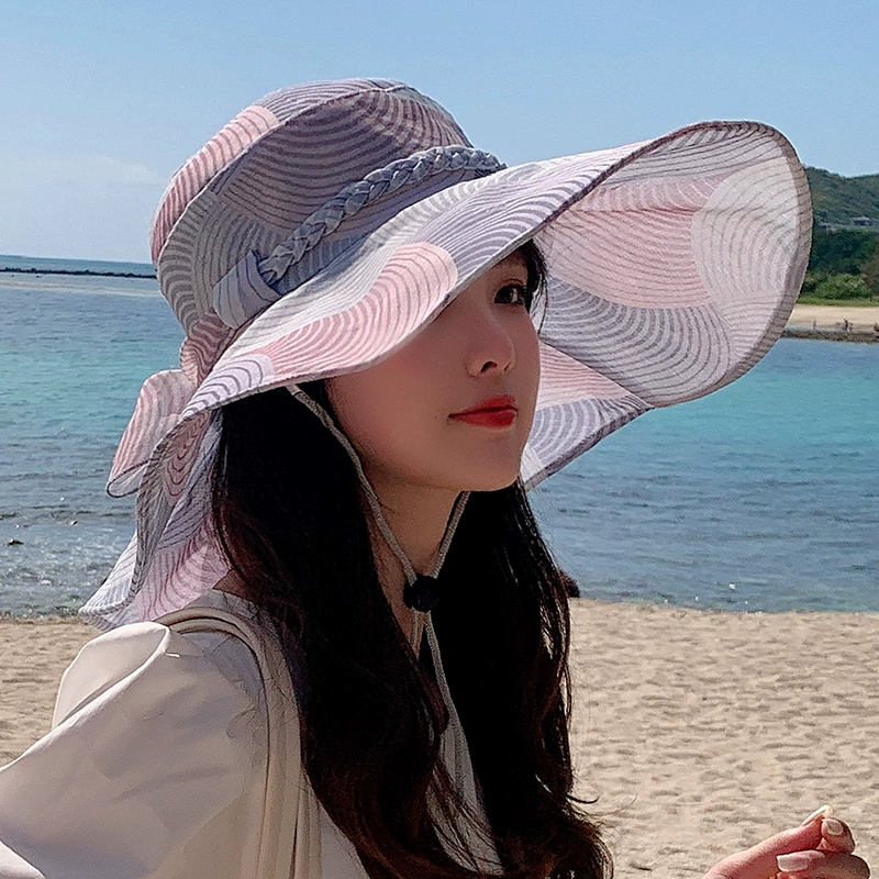 قبعة شمسية أنيقة للنساء مع فيونكة لقضاء العطلات الصيفية على شاطئ البحر