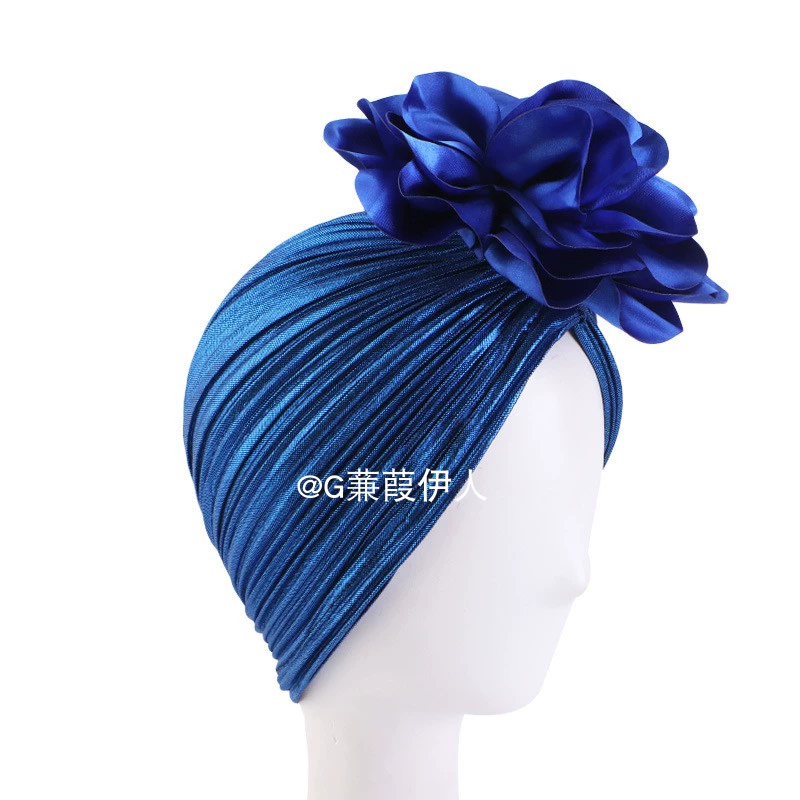 قبعة الحجاب النسائية ذات الزهرة الكبيرة ذات الطيات الحريرية المشرقة في الشرق الأوسط