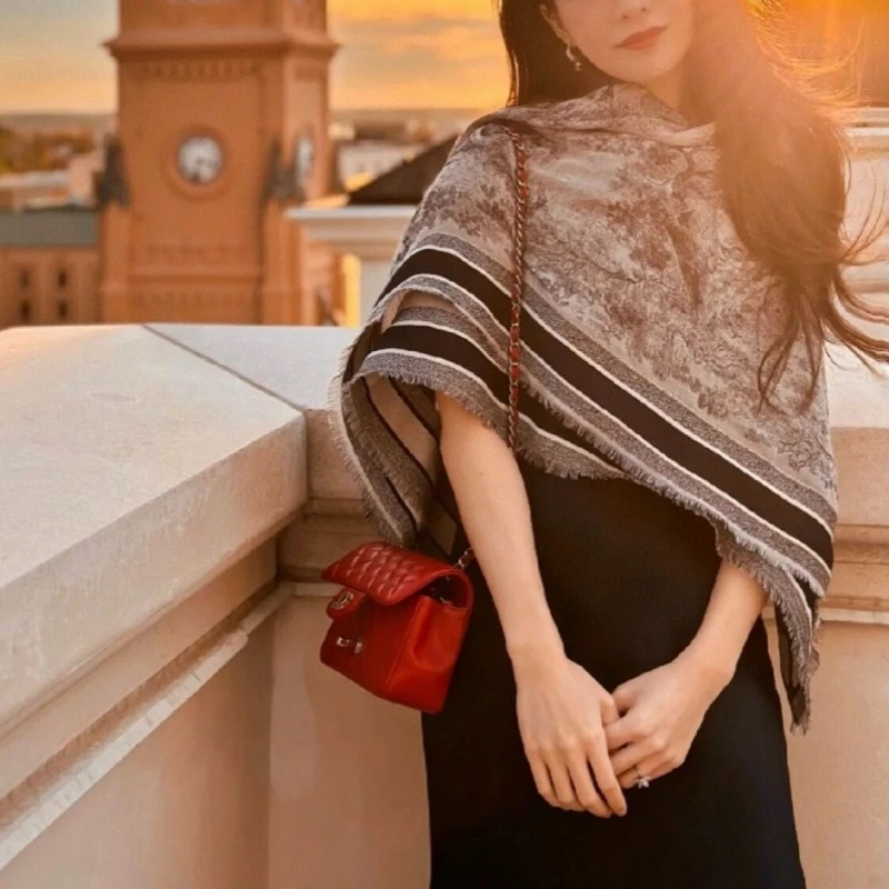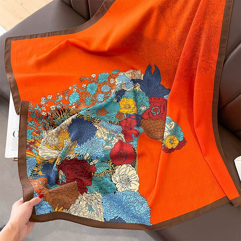وشاح مربع كبير عصري طويل وراقي بمزاج الربيع والخريف