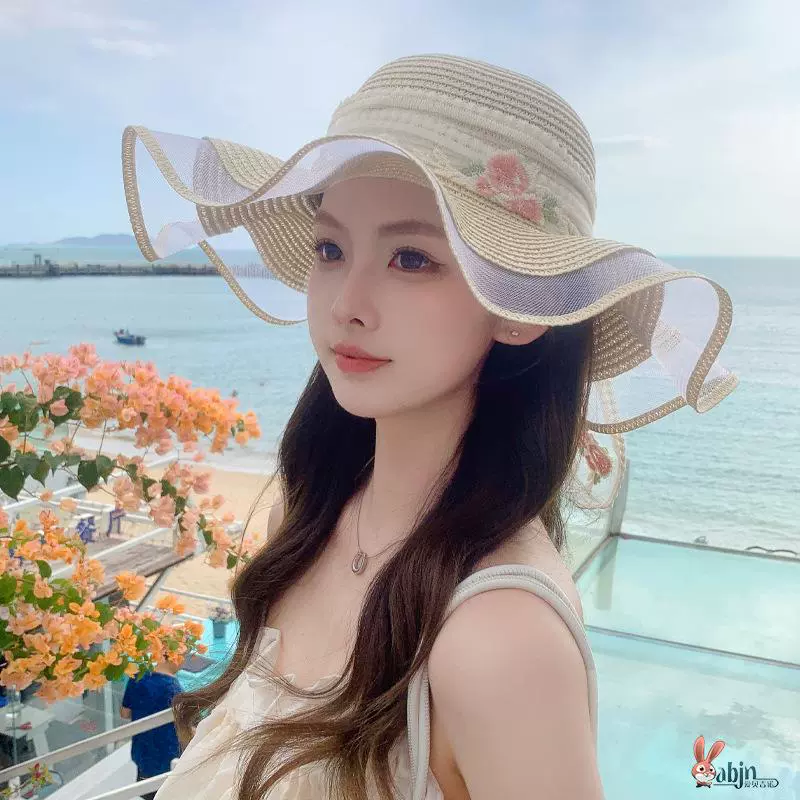 قبعة Arc de Triomphe النسائية الصيفية ذات الظل الخفيف الفاخرة ذات الرأس الكبير من القش