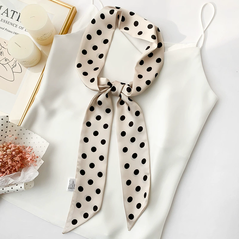 وشاح حريري صغير متعدد الاستخدامات للربيع والخريف للنساء ذو شريط طويل ورقيق منقط
