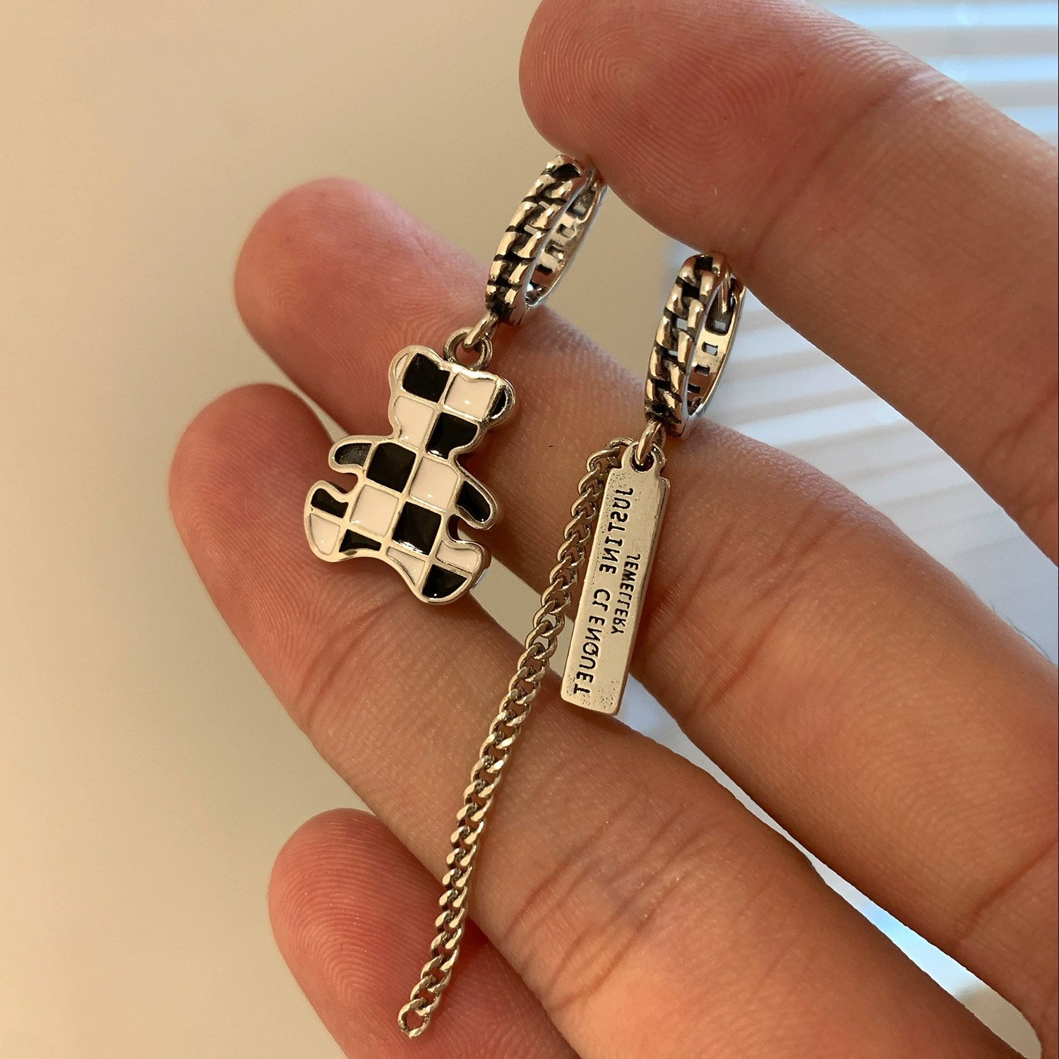 أقراط ريترو غير متماثلة على الطراز الكوري باللونين الأسود والأبيض للنساء