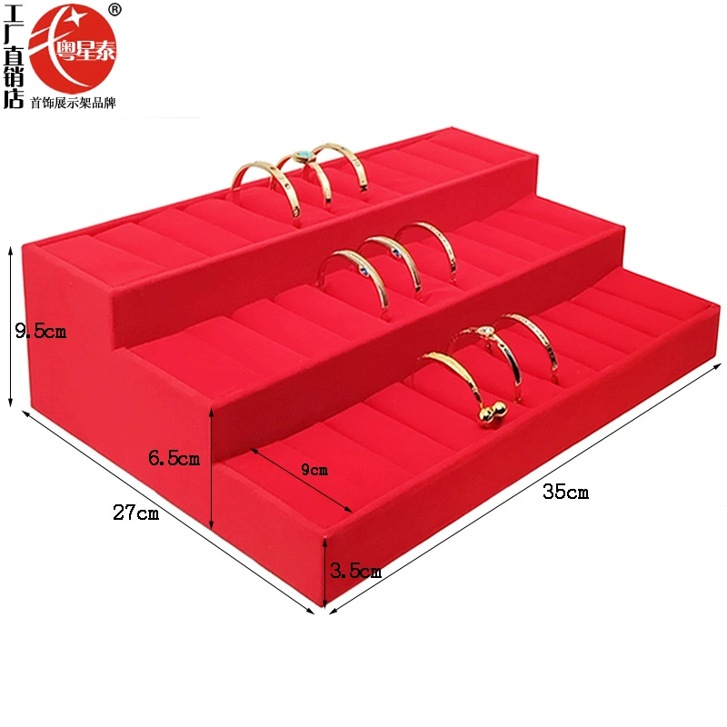 صينية مجوهرات على شكل سوار مخملي أحمر، صينية متدلية باللون الذهبي