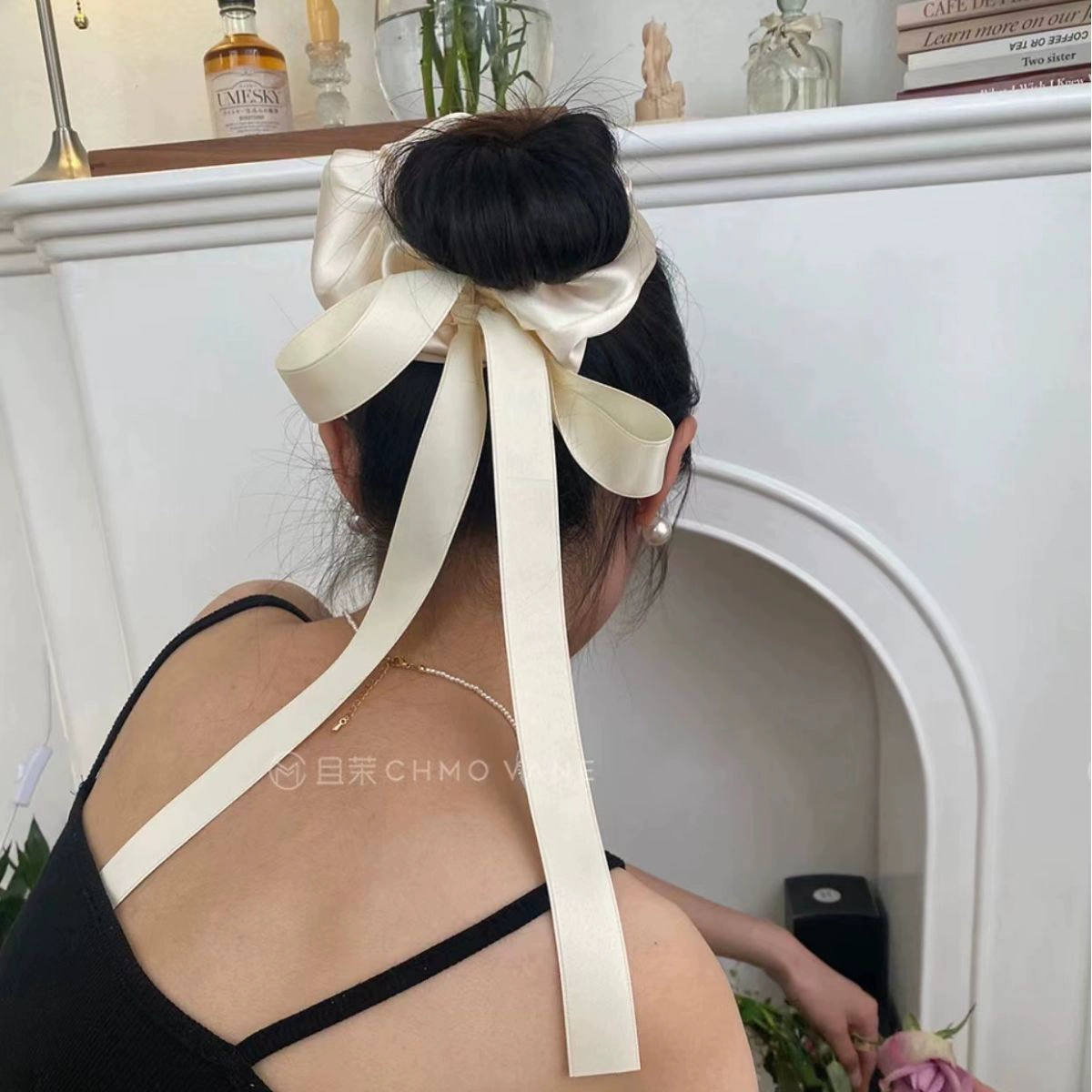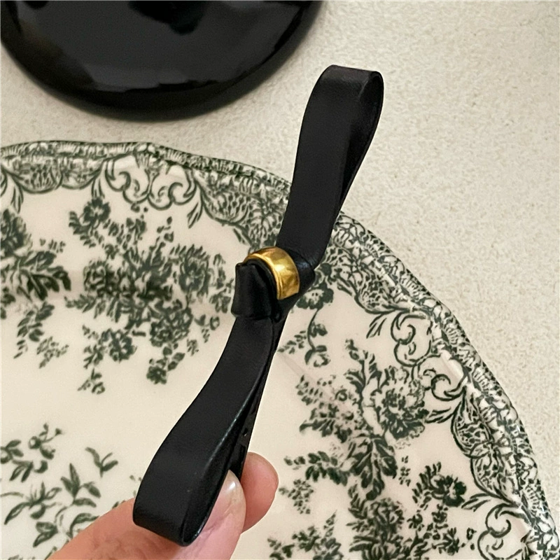 دبوس شعر من الجلد الفاخر مع فيونكة بإبزيم معدني كلاسيكي