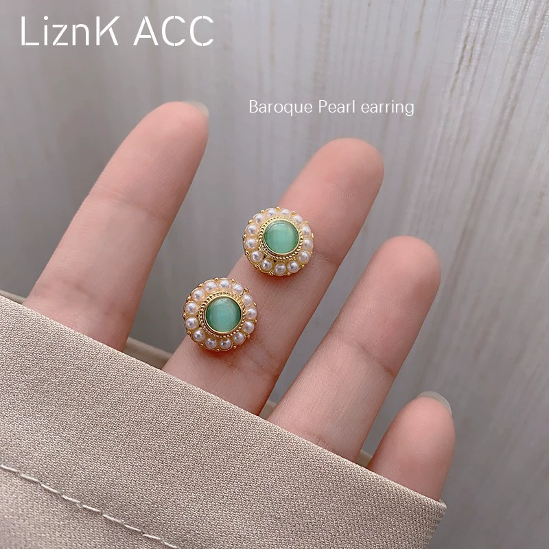 أقراط اللؤلؤ التقليد الباروكي للنساء، أقراط الزمرد الصغيرة والبسيطة والراقية 2020 اتجاه جديد
