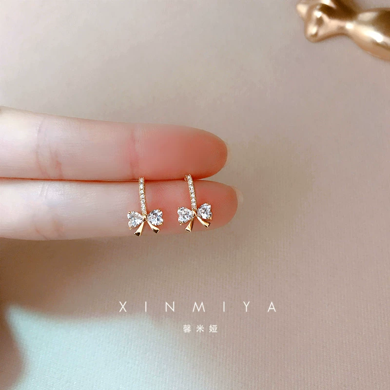 أقراط Xinmia للسيدات من الفضة الإسترلينية بتصميم متخصص على شكل فيونكة