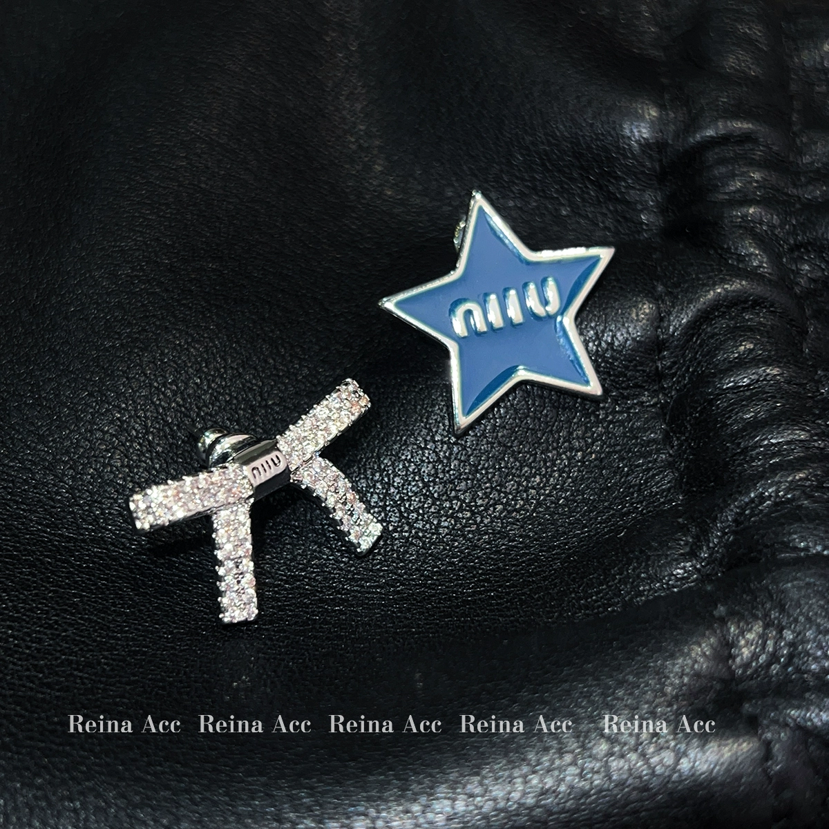 أقراط بتصميم نجمة زرقاء فاخرة غير متماثلة للنساء