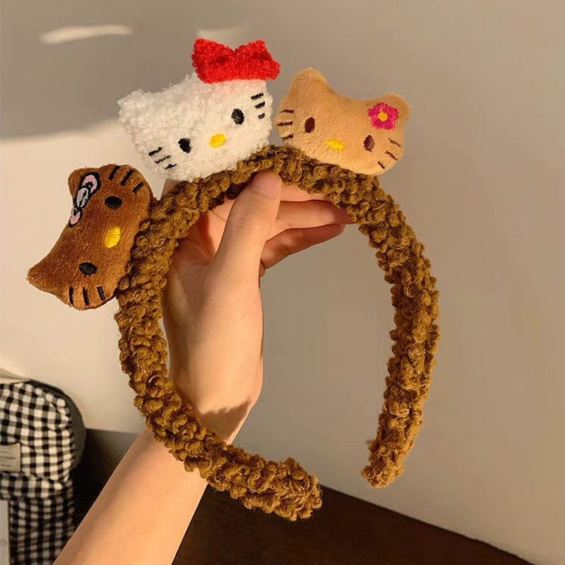 دمية هالو كيتي الجديدة للسيدات، عصابة رأس خاصة لغسل الوجه، إكسسوارات للشعر، قناع مكياج من القطيفة، عصابة رأس للشعر الضغط