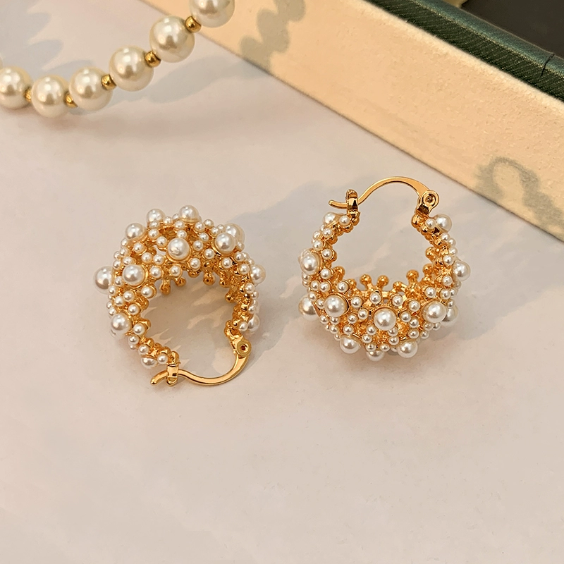 أقراط اللؤلؤ الفريدة المجوفة للفتيات الرجعية الفاخرة الخفيفة