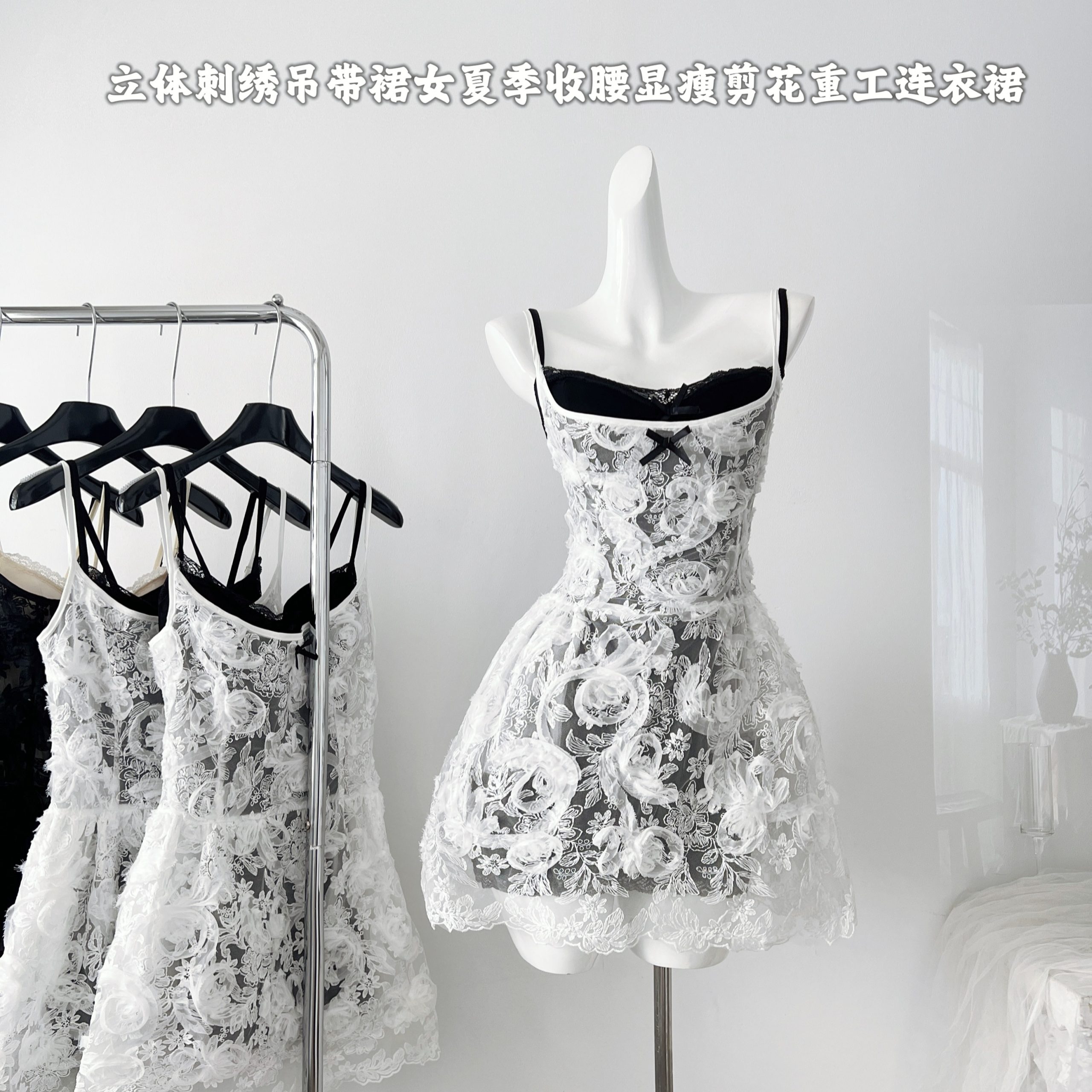 تنورة بحمالات مطرزة ثلاثية الأبعاد “Plant Secret Realm” محلية الصنع من Taozi للنساء، فستان صيفي للتخسيس على شكل زهرة صناعة ثقيلة
