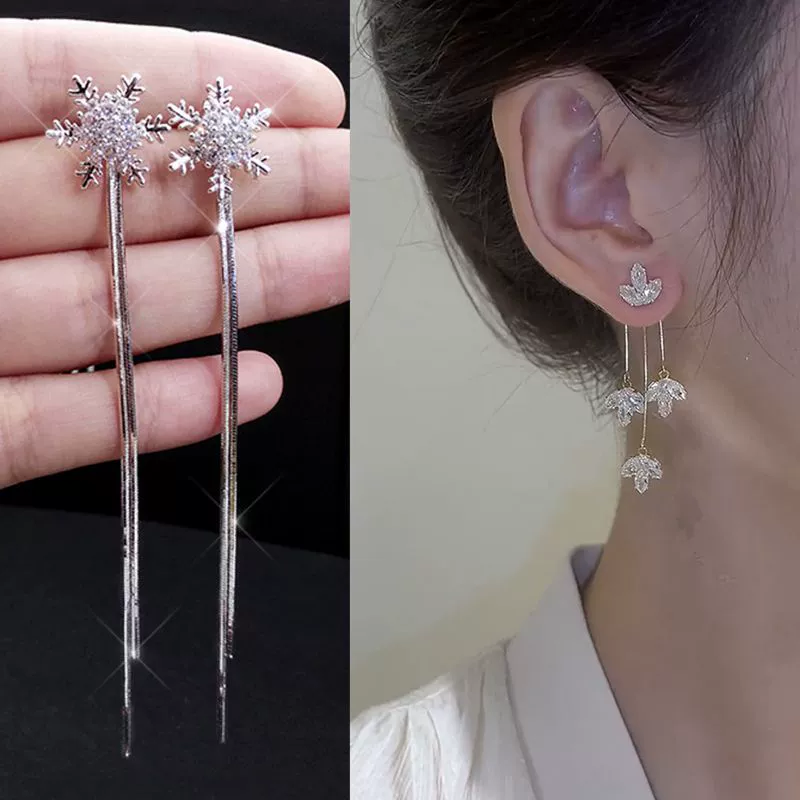 أقراط طويلة من الفضة الإسترلينية على شكل ندفة الثلج للسيدات على الطراز الكوري