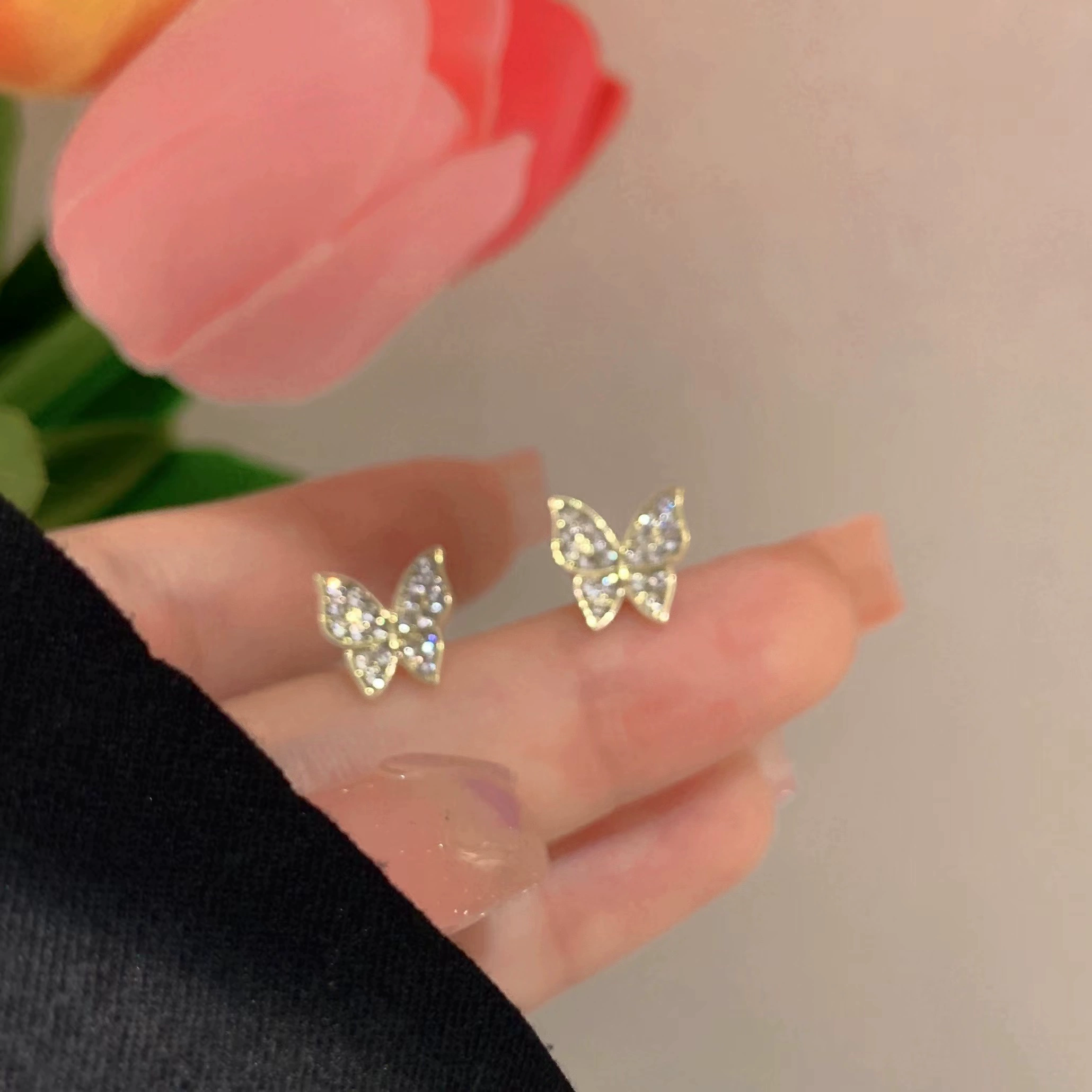 أقراط نسائية صغيرة ومتعددة الاستخدامات بإبرة فضية s925 من الفراشة مرصعة بالألماس بالكامل