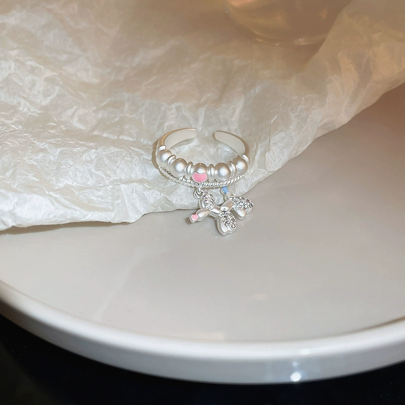 خاتم زهرة جميلة للنساء، قلادة رائعة وأنيقة على شكل جرو كرتوني متين S925 فضية مفتوحة بحلقة إصبع السبابة العصرية
