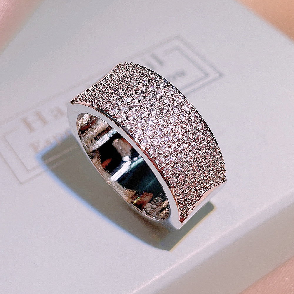 خاتم رجالي من المجوهرات النسائية مرصع بالكريستال والماس والفضة