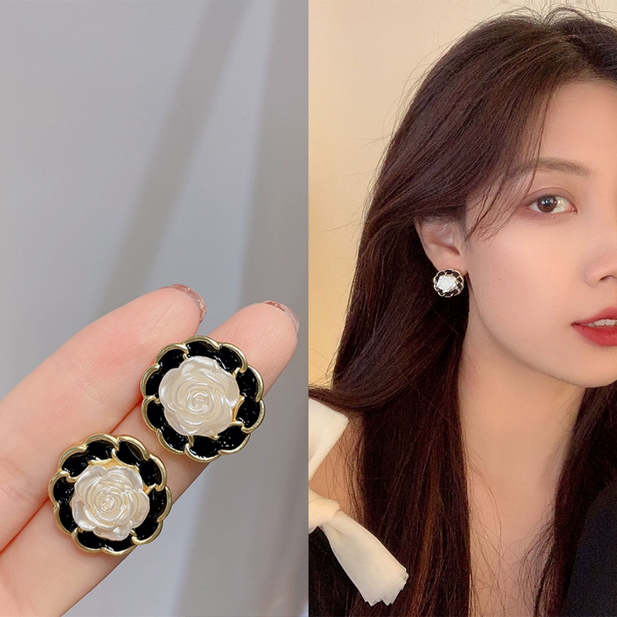 أقراط كاميليا فرنسية كلاسيكية بإبرة فضية 925 للنساء أقراط لؤلؤ على الطراز الكوري شخصية المشاهير على الإنترنت