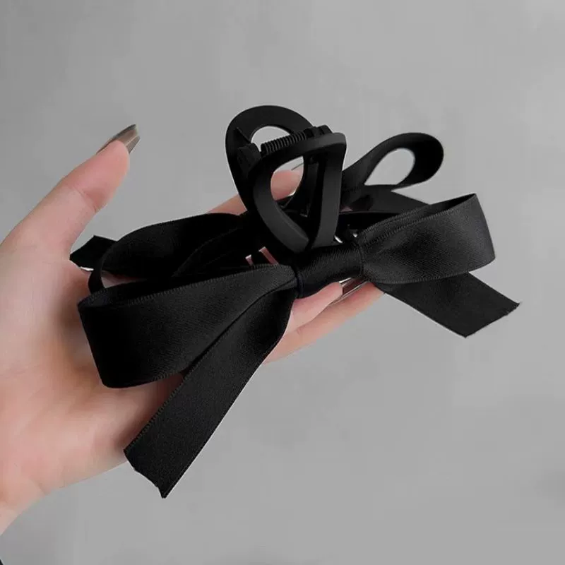دبوس شعر كلاسيكي راقي مع قوس أسود على الجزء الخلفي من الرأس