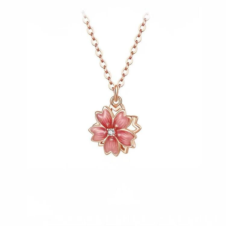 قلادة زهر الخوخ من الفضة الإسترلينية عيار 925 للنساء، سلسلة ترقوة خفيفة فاخرة، سلسلة سترة عصرية، قلادة زهر الكرز قابلة للدوران، هدية عيد الحب