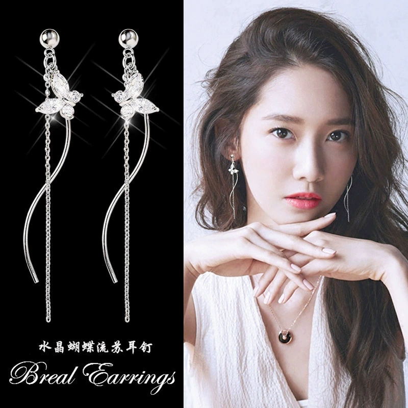 S925 إبرة فضية مزاجه الكورية طويلة حجر الراين شرابة الأقراط الإناث الإنترنت المشاهير موضة تنوعا ضئيلة الأقراط الأقراط العصرية