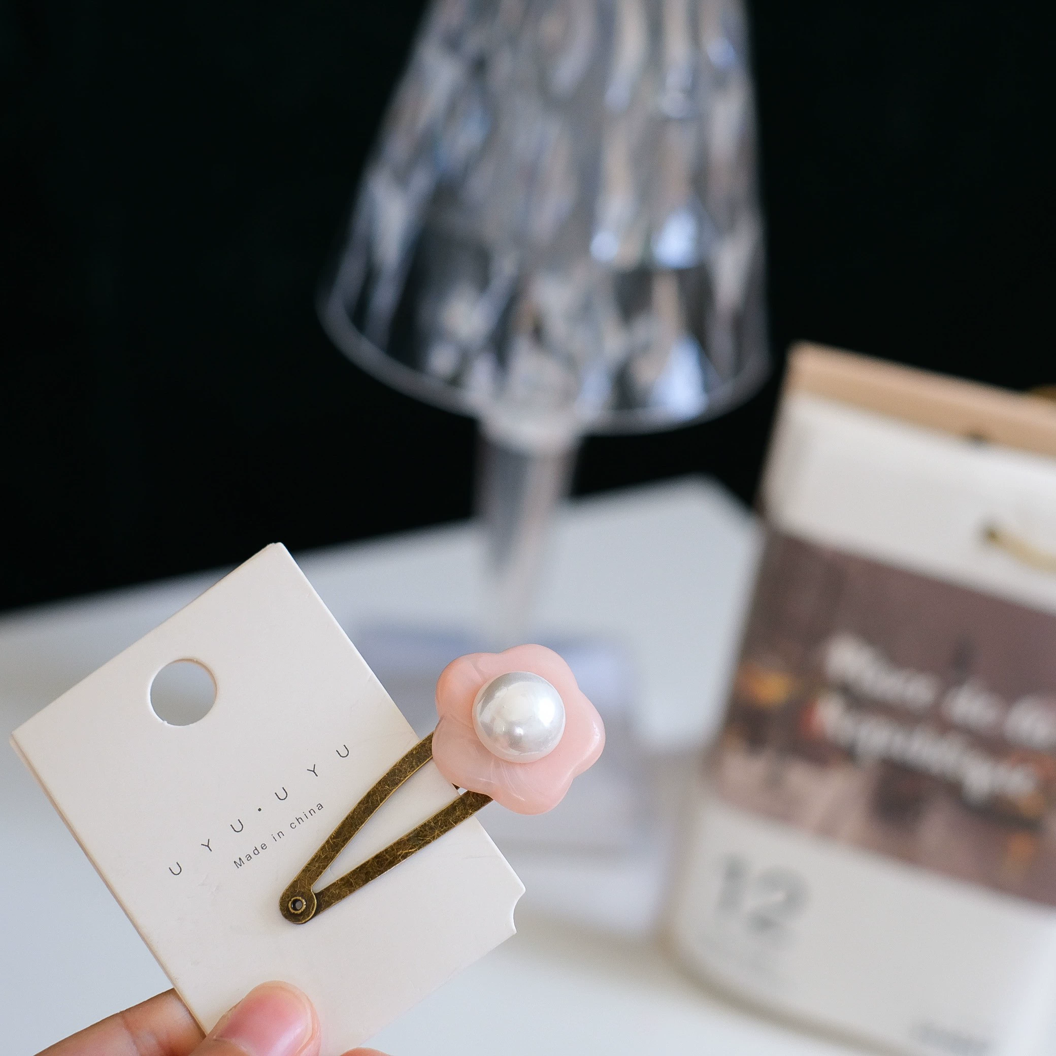 ربطة شعر كلاسيكية بمشبك BB ومضادة للانزلاق من حبر الزهور الصغيرة واللؤلؤ