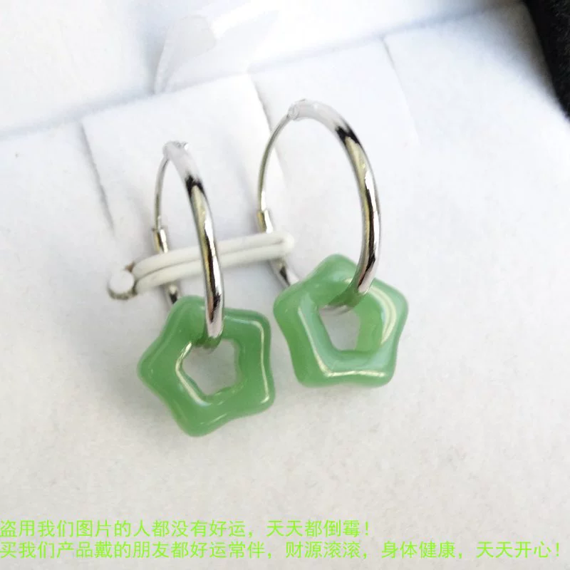 نجمة الحظ تتألق بشكل مشرق والثروة ترافق دائمًا الطراز الجديد من الفضة الإسترلينية على شكل نجمة اليشم وخيط الأذن الساحر الذي يظهر أقراط اليشم المزاجية لأقراط اليشم لتقليل العمر