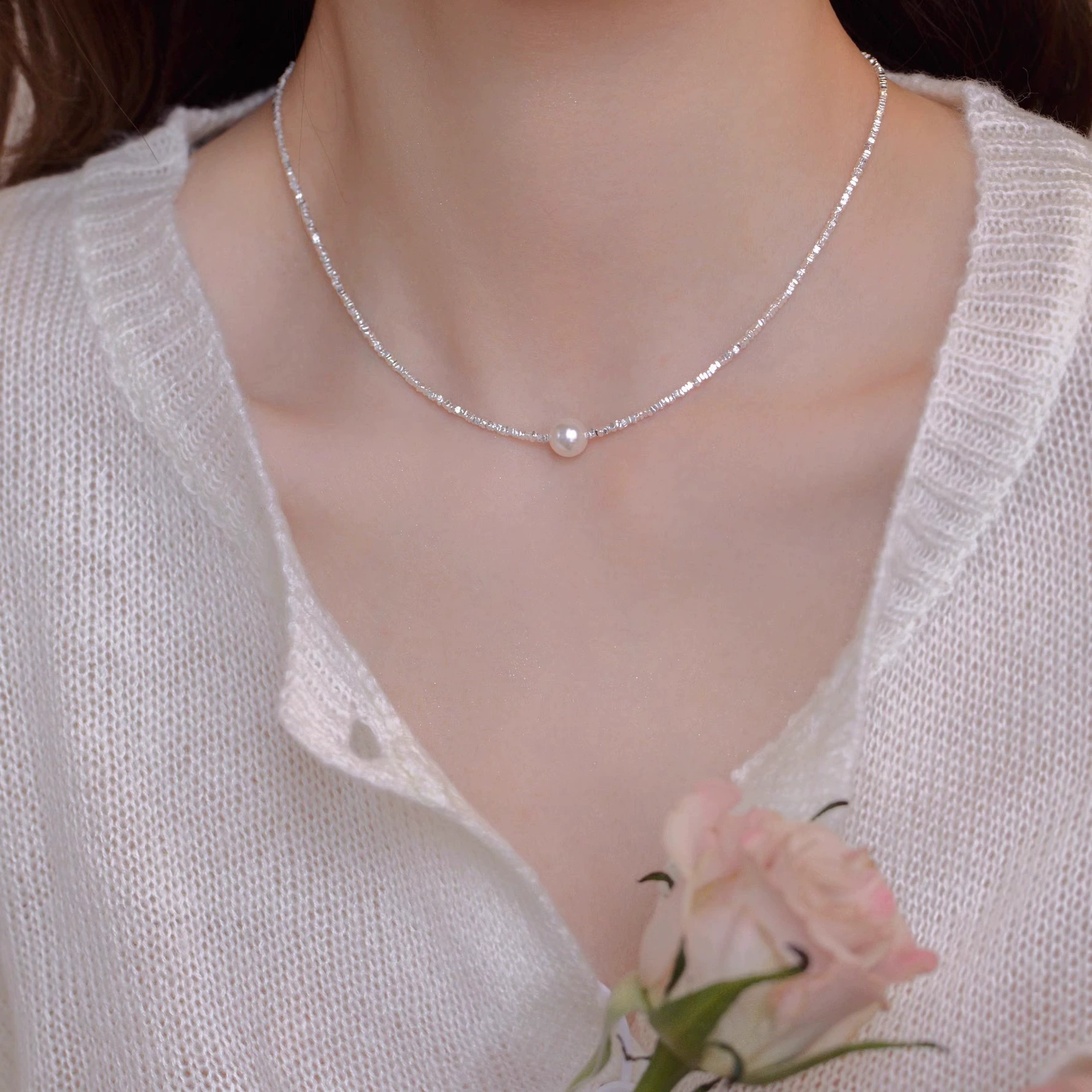 قلادة من الفضة المكسورة للسيدات على الطراز الساخن الخفيف قلادة من اللؤلؤ