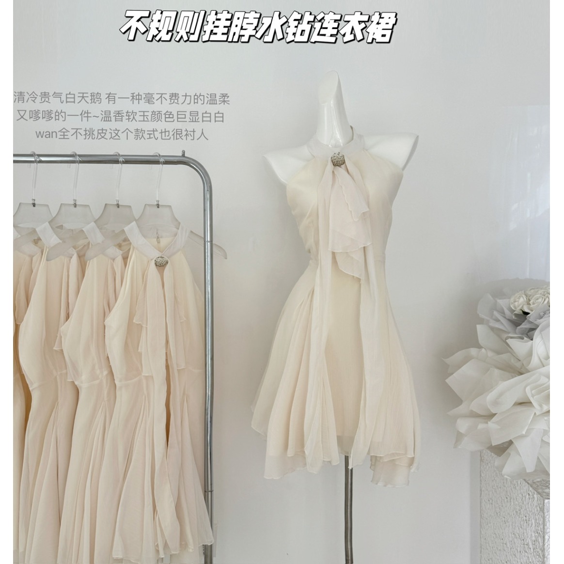 قطع فستان من حجر الراين برقبة رسن مثيرة غير منتظمة