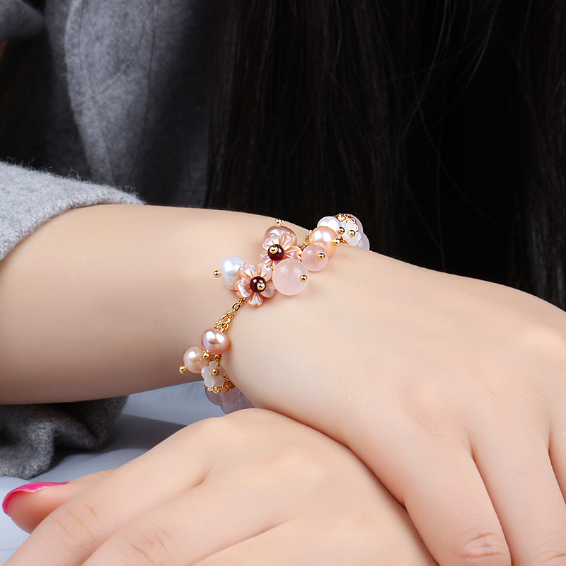 الرجعية ساكورا الوردي شرابة سوار العرقية نمط روز كوارتز سوار المرأة الحلو بسيطة الزخرفية اليد مجوهرات صديقة هدية