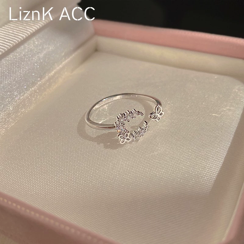 خاتم فراشة قمر كريستالي راقي للنساء، تصميم متخصص، فتحة فاخرة خفيفة، حلقة إصبع السبابة العصرية والشخصية التي لا تبهت