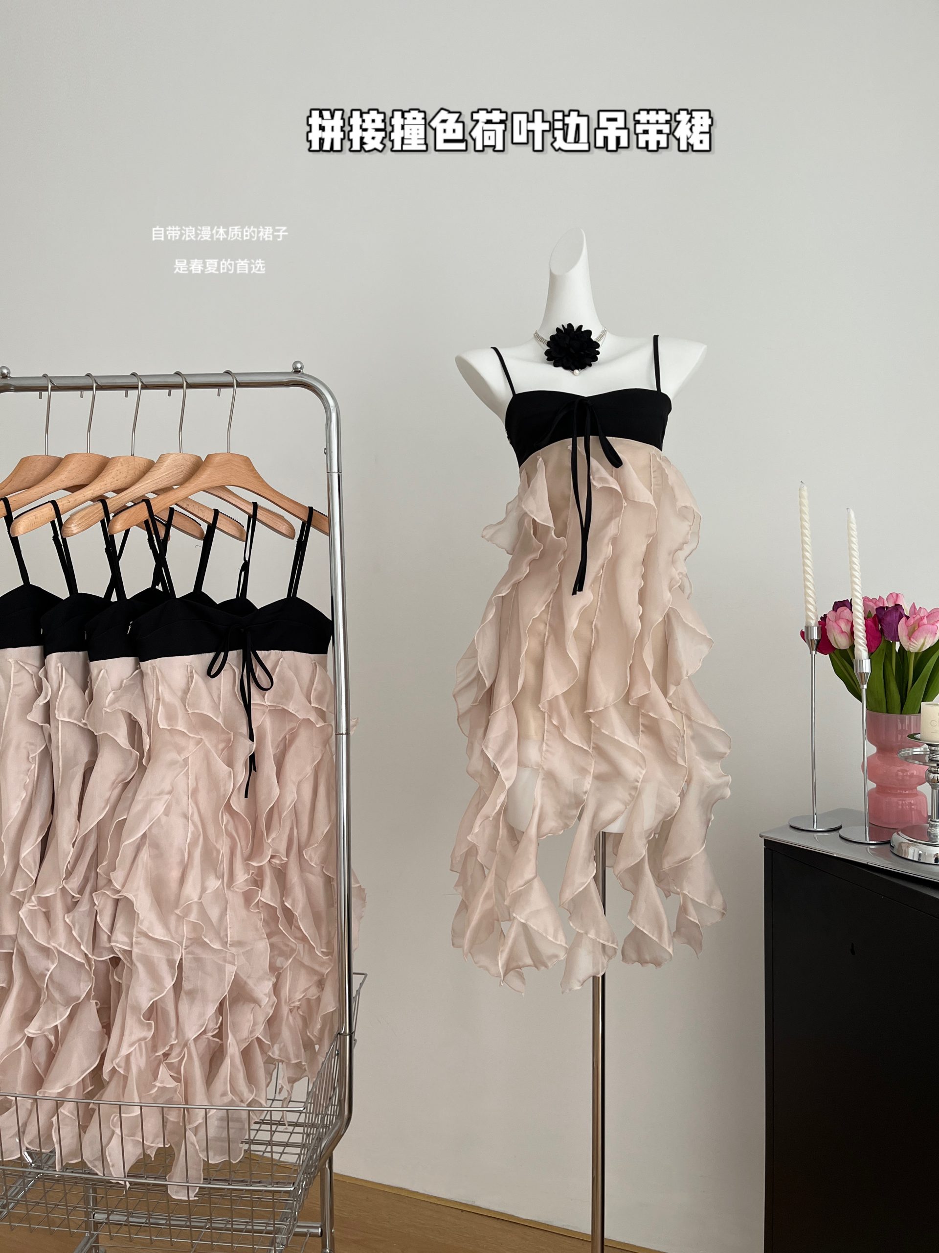 فستان سهل الارتداء بكشكشة متباينة اللون من تصميم أوني