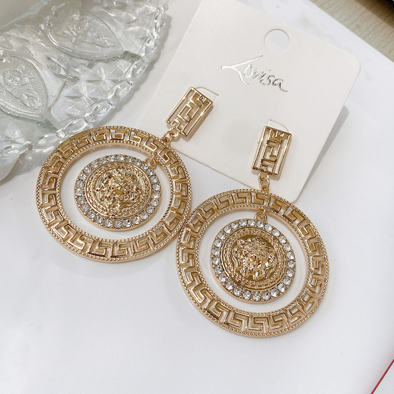 التجارة الخارجية الأوروبية والأمريكية الأصلية مبالغ فيها الإغاثة الرجعية ورقة نمط فلاش الماس ميدوسا الأسد رئيس الأقراط المعدنية