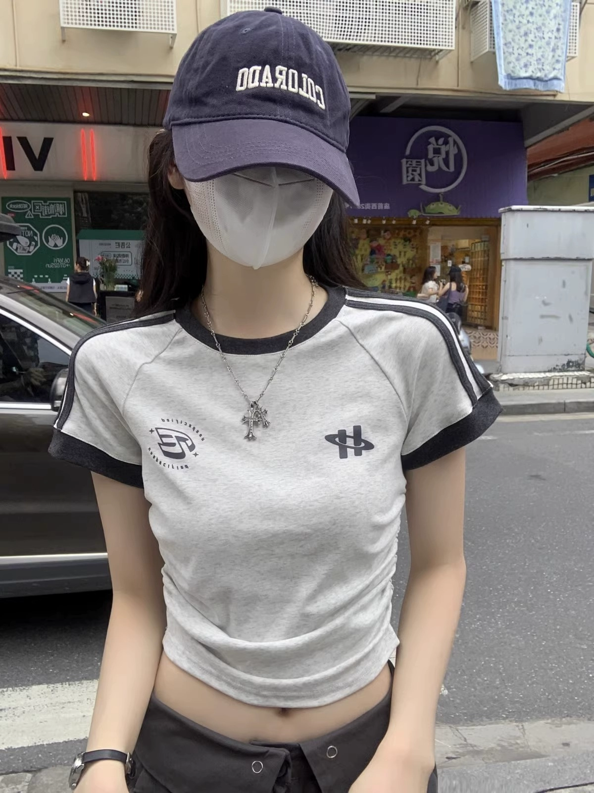 حلوة فتاة الساخنة تصميم المتخصصة مطوي قصيرة الأكمام تي شيرت