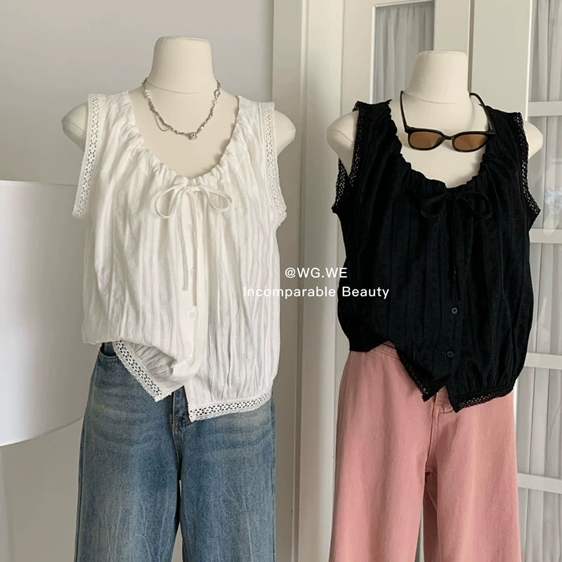 رومانسية بلا أكمام سترة الربيع الدانتيل المرقعة