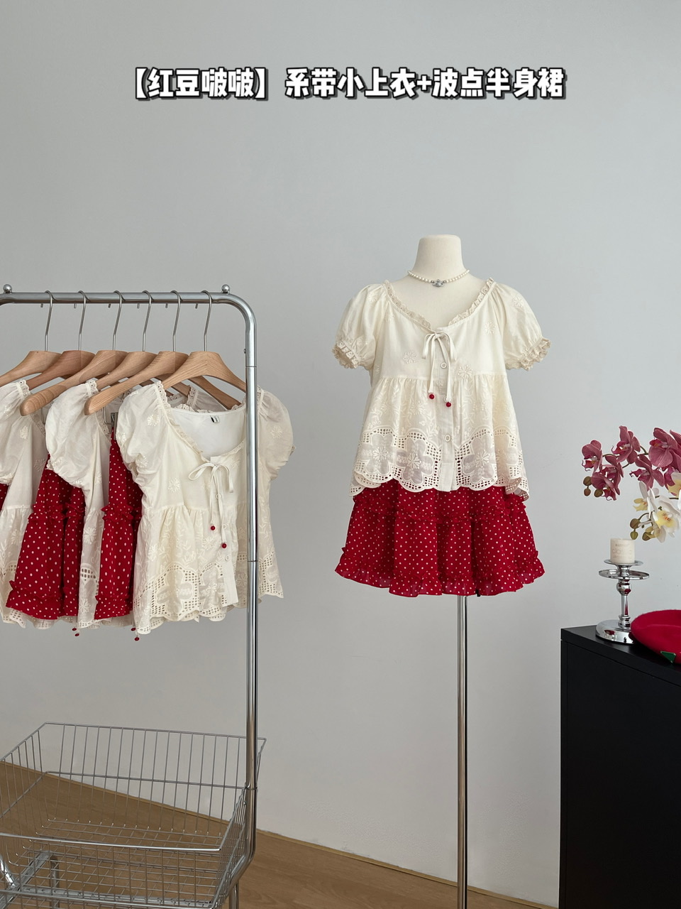 تنورة حمراء منقطة ومجموعة علوية مكونة من قطعتين