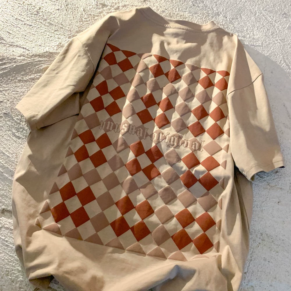 تي شيرت بأكمام قصيرة ورقبة دائرية على شكل رقعة الشطرنج