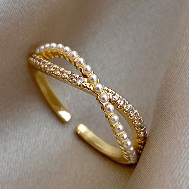 لؤلؤ مطلي بالكهرباء، حلقة مفتوحة مخصصة بسيطة من الذهب الحقيقي