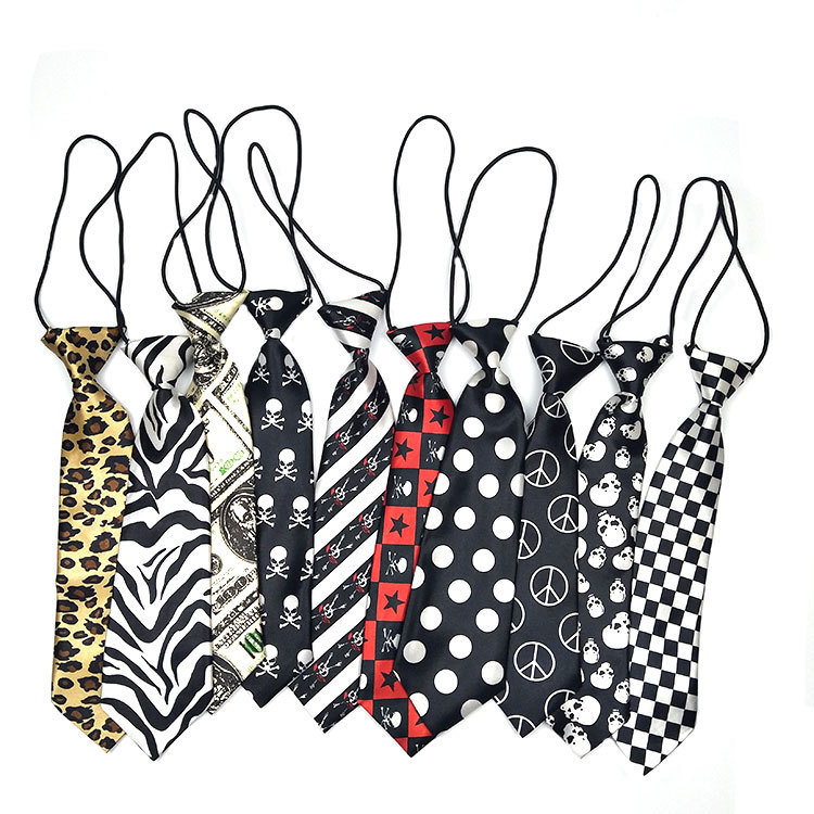 Song Xiaoxiao ليوبارد طباعة أبيض وأسود منقوش أزرق وأبيض مخطط كبير منقطة طالب إبداعي متعدد الاستخدامات ربطة عنق صغيرة شريط مطاطي قصير