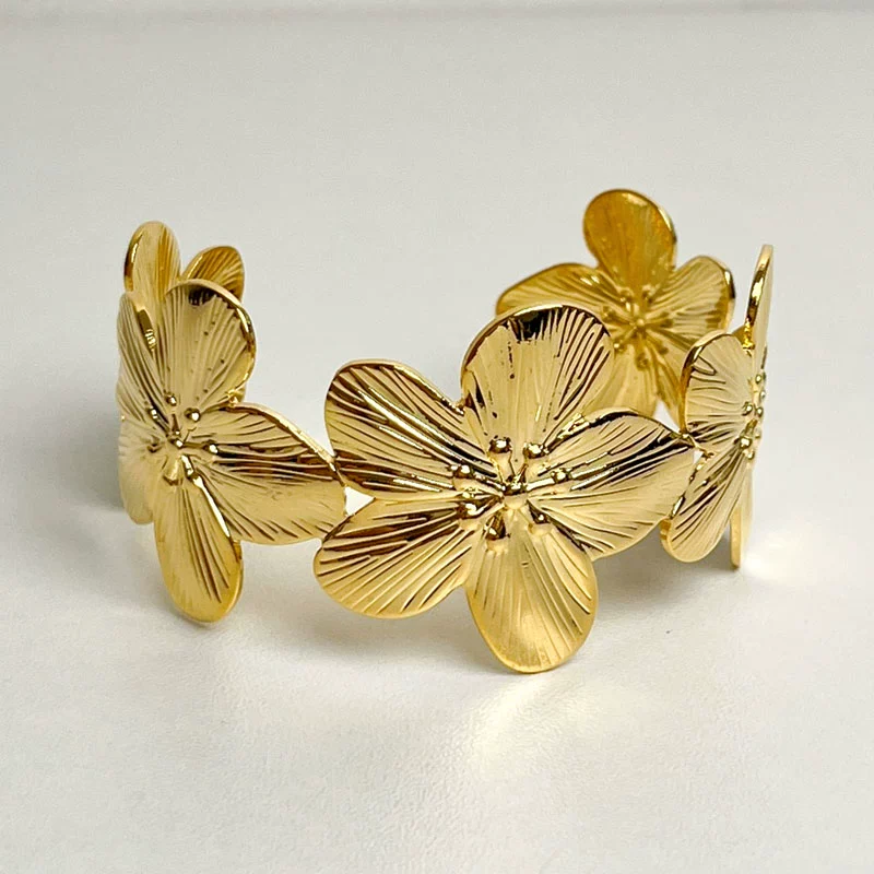 نسخة كلاسيكية واسعة من سوار نسائي فاخر خفيف مفتوح مع زهور