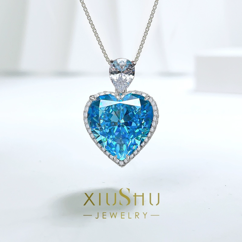 متعددة الاستخدامات 925 الفضة الاسترليني القلب المحيط عالية الكربون قلادة الماس