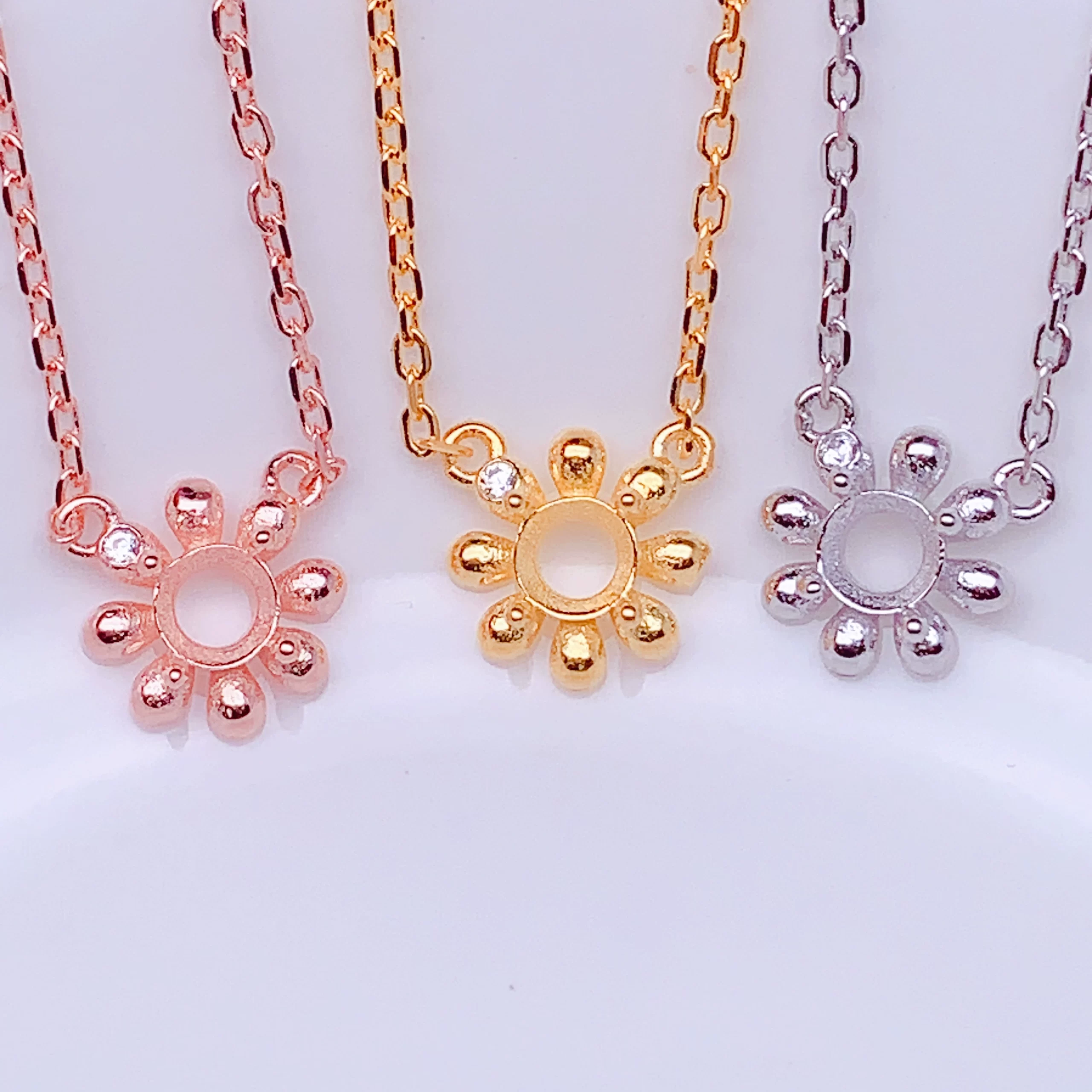 Seiko S925 فضة سلسلة الترقوة دعم فارغة تصميم زهرة الأقحوان العصرية طالب متعدد الاستخدامات مطعمة مستديرة 4*4