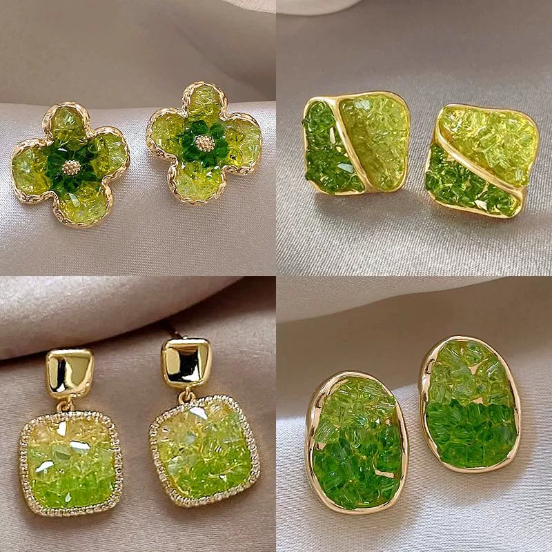 أقراط نسائية راقية ذات تصميم أخضر متخصص مع الزهور