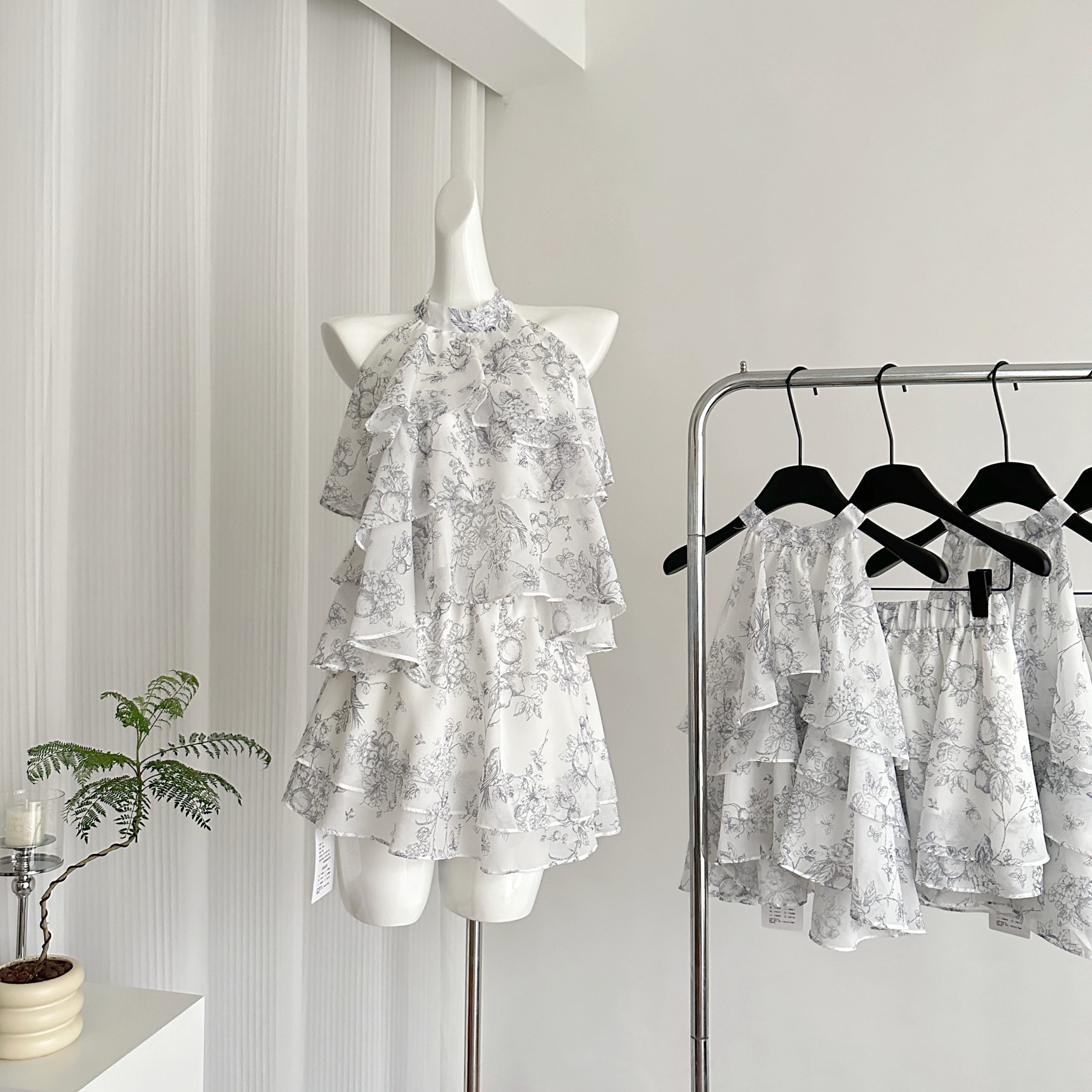Taozi محلية الصنع جيانغنان يايو بدلة النمط الصيني الجديد أنيقة طباعة الحبر الرسن تنورة الشيفون الأعلى