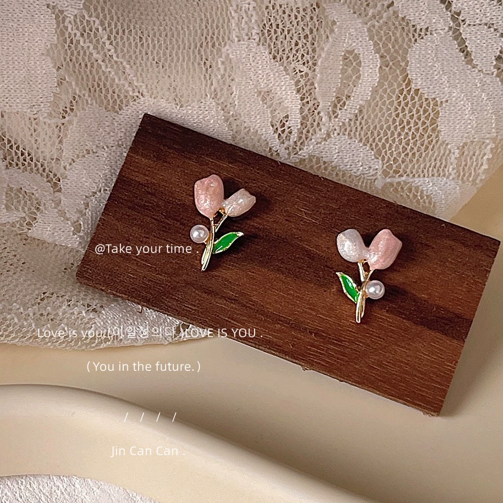 أقراط توليب وردي أقراط لؤلؤ صيفية نسائية بتصميم متخصص أقراط راقية 2023 اتجاه جديد