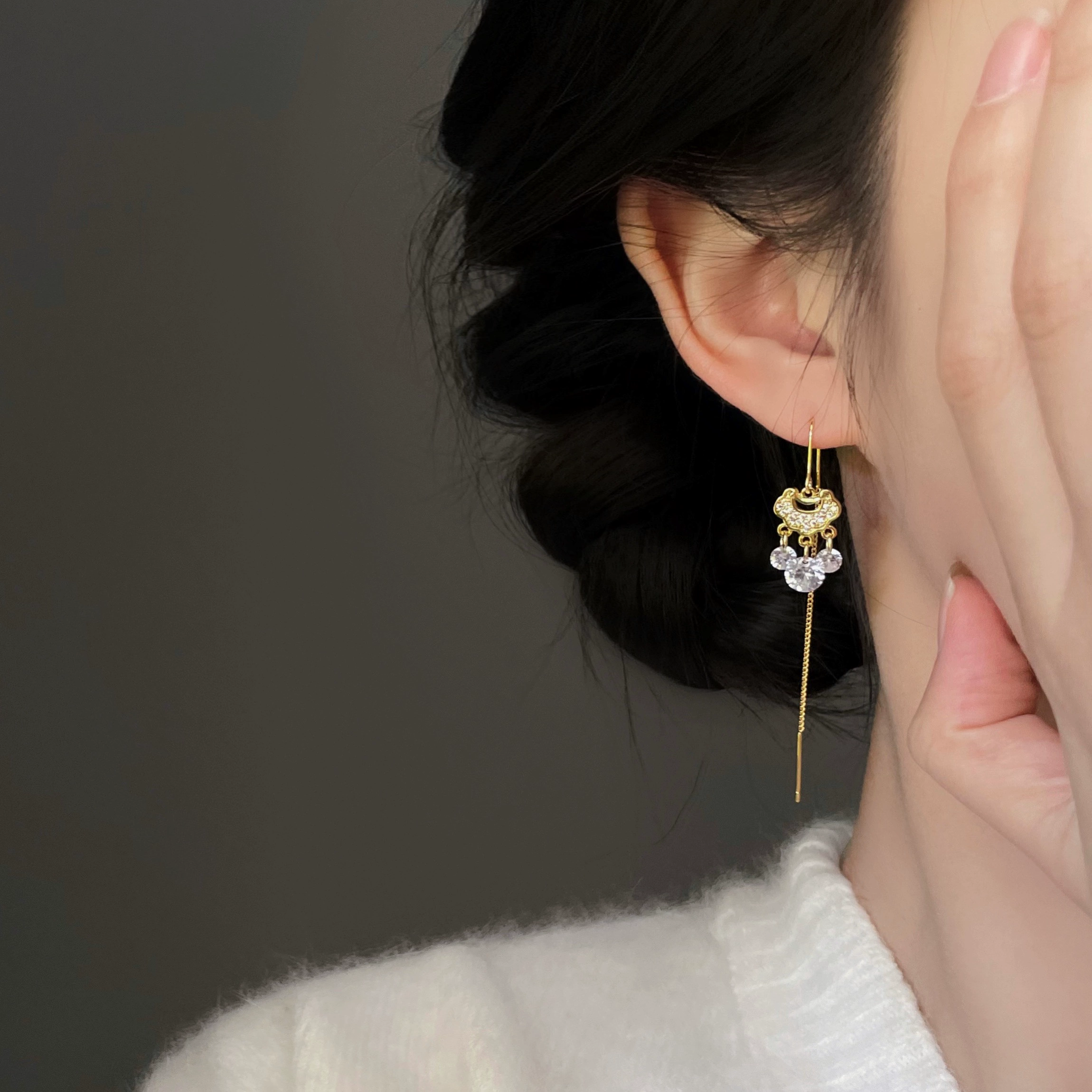“قفل السلام” النمط الصيني الجديد قفل السلام الأقراط شرابة طويلة طارد البعوض القرص الأذن كليب غير مثقوب المرأة أقراط النمط الصيني