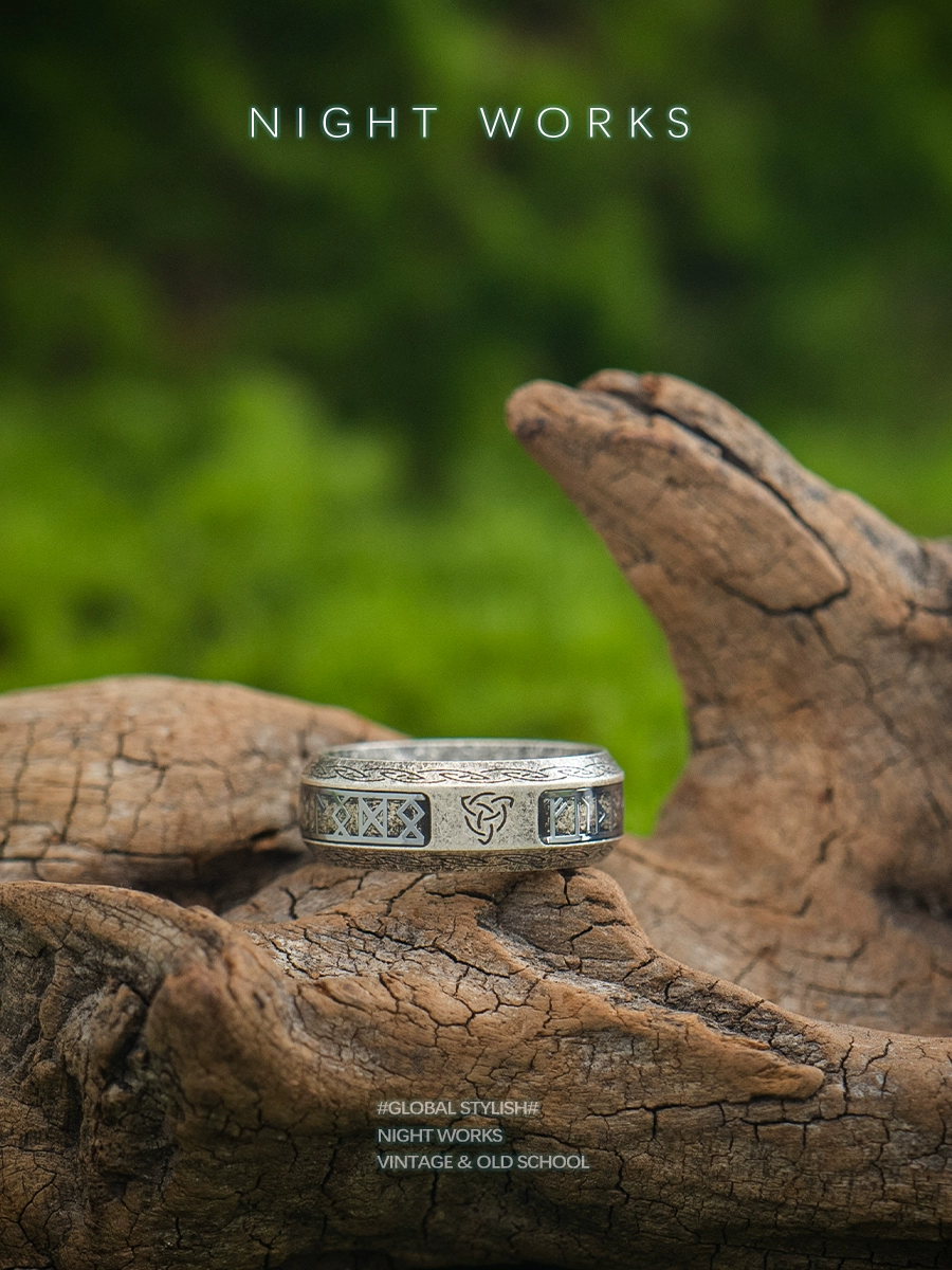 الأعمال الليلية “قاعة الشجاعة” الأساطير الاسكندنافية فايكنغ رون خاتم ريترو للرجال مقاس كبير نمط روك قديم للمال