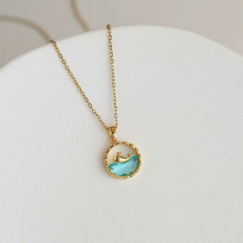 سلسلة حوت الترقوة الأنثوية المطلية بفولاذ التيتانيوم الأزرق عيار 18 قيراط