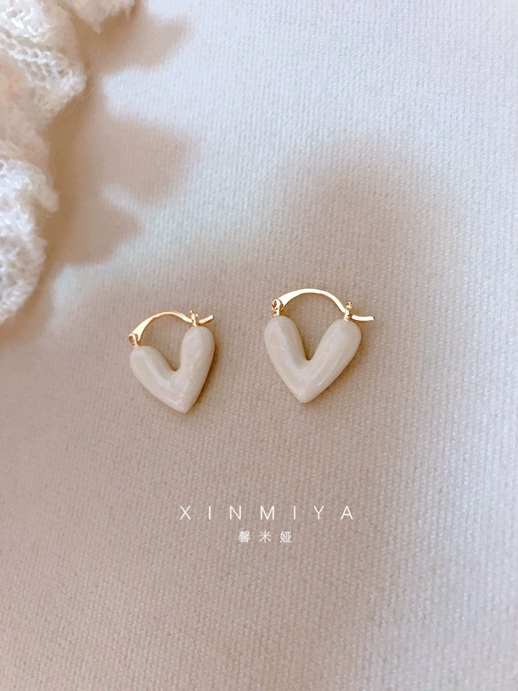 أقراط نسائية عصرية رائعة على شكل قلب الحب المزجج باللون الأبيض الفاخر