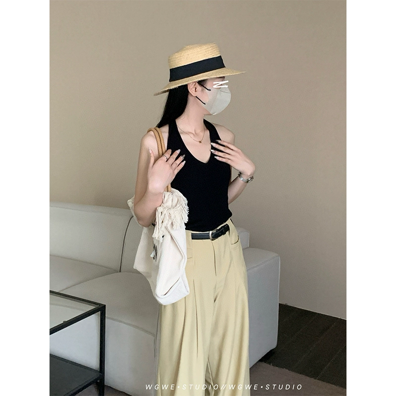 هونج كونج نمط الرجعية الأحمر هالترنيك محبوك بروتيل المرأة الصيف لباس خارجي فتاة الساخنة الداخلية قاع أعلى عارية الذراعين
